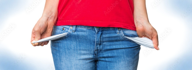 -The example is an image of someone showing the inside of their pockets, a visual shorthand for someone having no money.