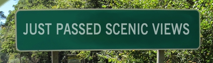 The point of the ‘just passed scenic views’ sign: it’s way too late to be telling a reader what to expect after it’s already gone.